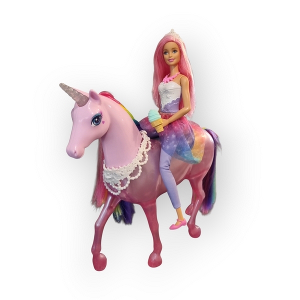 Plongez dans l’univers féerique avec Barbie Dreamtopia et sa licorne interactive aux couleurs arc-en-ciel.