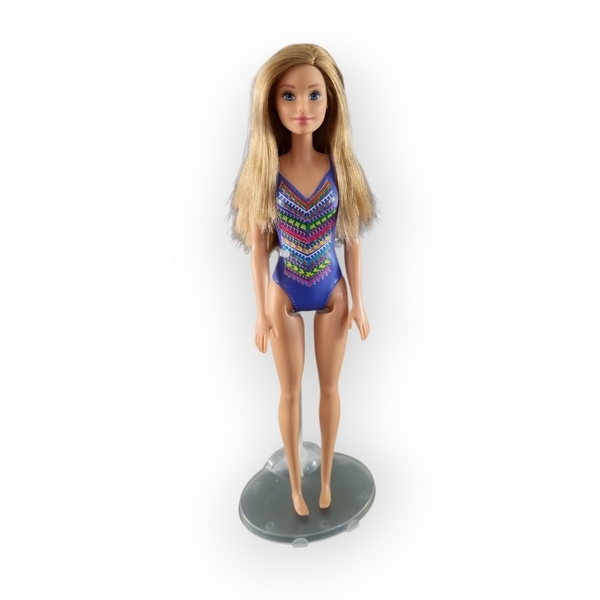 Barbie Plage poupée blonde en maillot de bain une pièce bleu peint sur le corps.