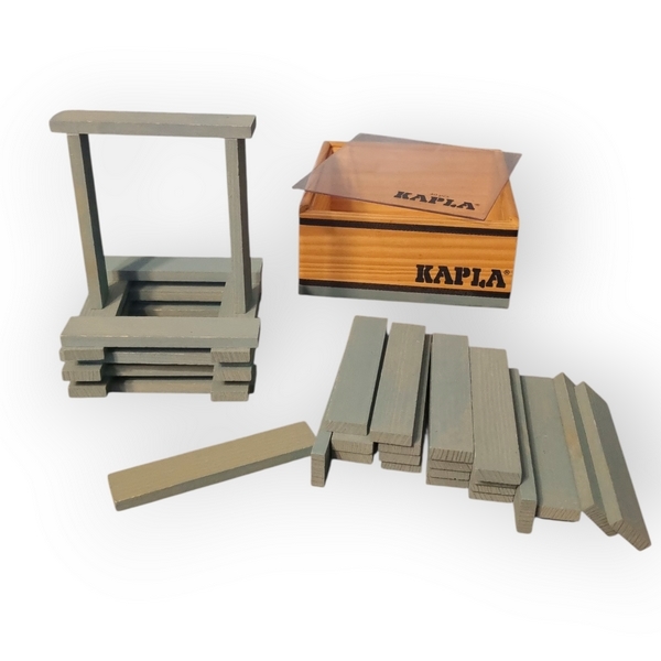 Ce coffret Kapla contient 40 planchettes bleu clair, parfaites pour enrichir les constructions et ajouter une touche de couleur.