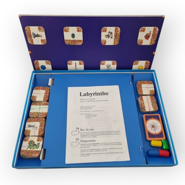 Le labyrinthe infernal, une course palpitante où chaque joueur déplace les murs pour se frayer un chemin qui mène aux trésors. On va de surprises en surprises. On croit pouvoir atteindre un trésor quand soudain les murs coulissent…
