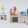 Avec des accessoires comme des briques de tissu de différentes couleurs, des fils, des ciseaux, 5 rubans, des notes autocollantes, un appareil-photo et un ordinateur…