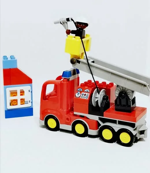 un camion de pompiers à construire avec une section arrière à charnières, une échelle mobile qui tourne