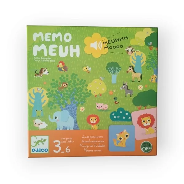 Un mémo rigolo où il faut appuyer sur une pastille jaune, tendre l’oreille et reconnaitre le cri d’un animal, puis le retrouver parmi des cartes.