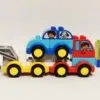 3 bases de roue, une grue et des briques décorées sur le thème des véhicules pour combiner et créer.